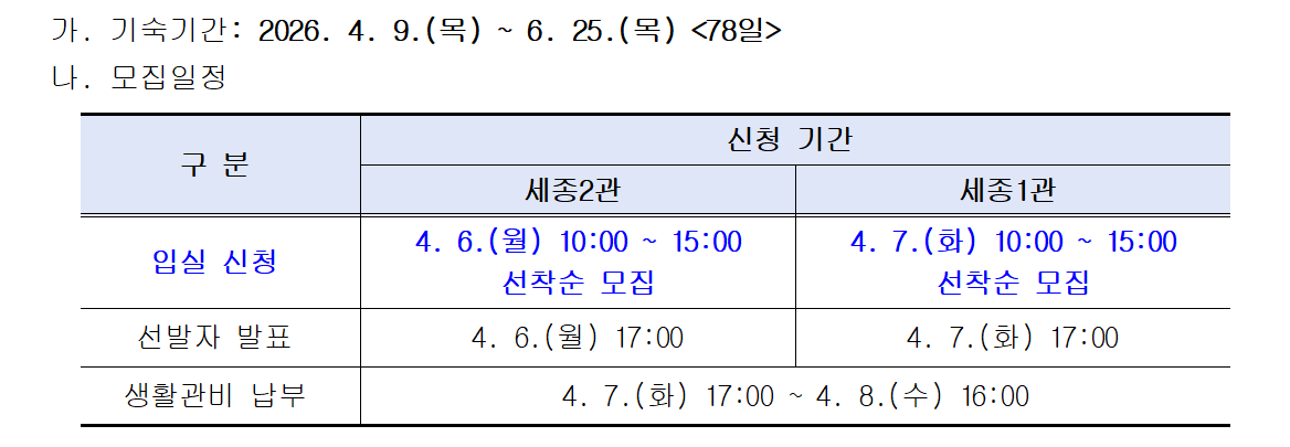 2026-1 학생생활관 학기중 추가모집(2차) 안내
