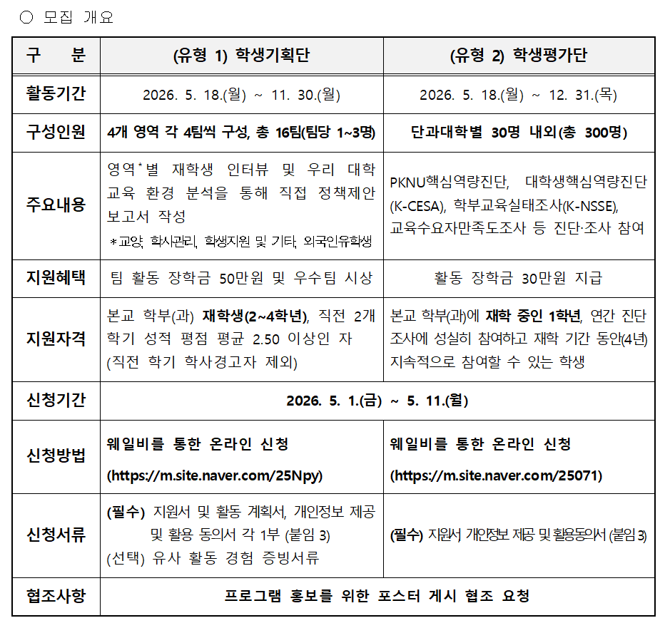 | 2026학년도 제8기 학생기획평가단 모집 안내 | |||